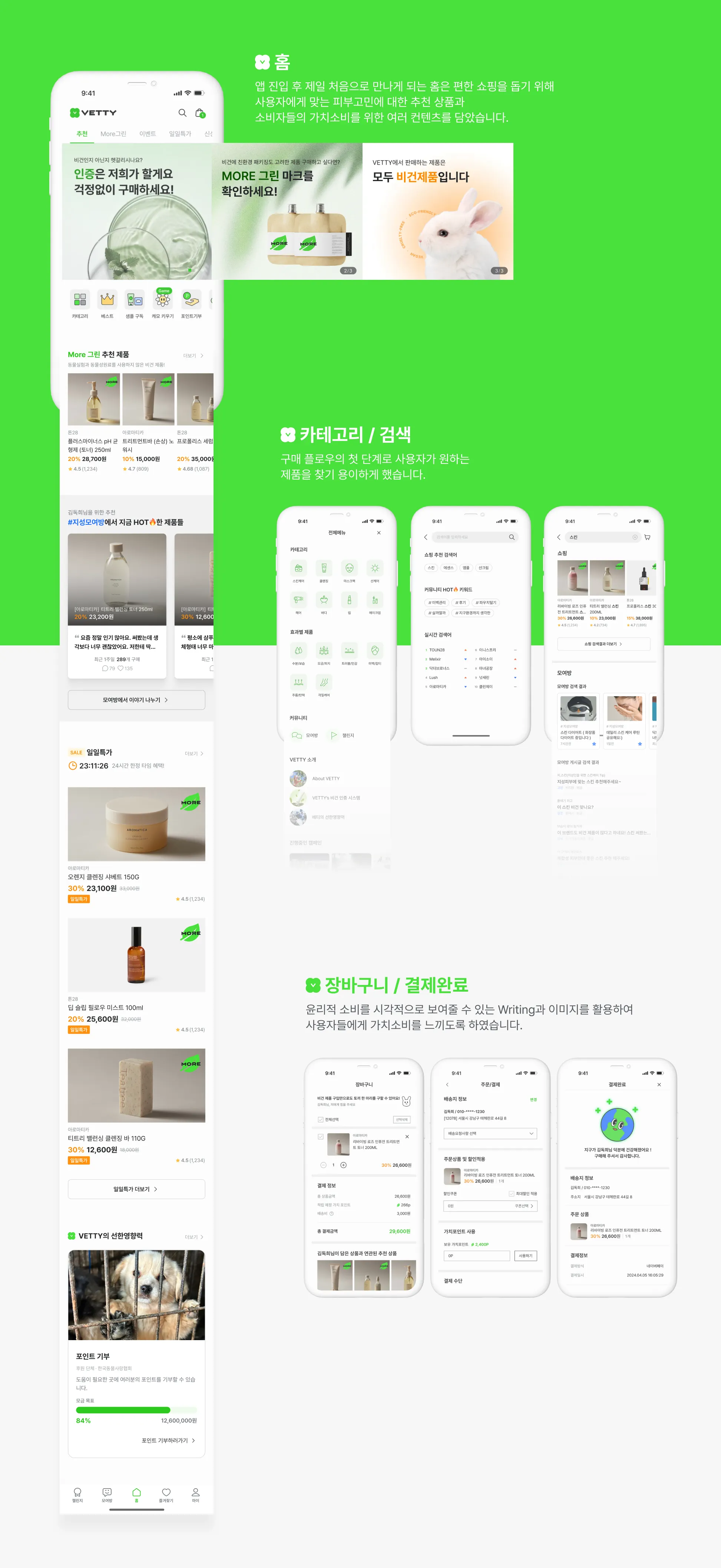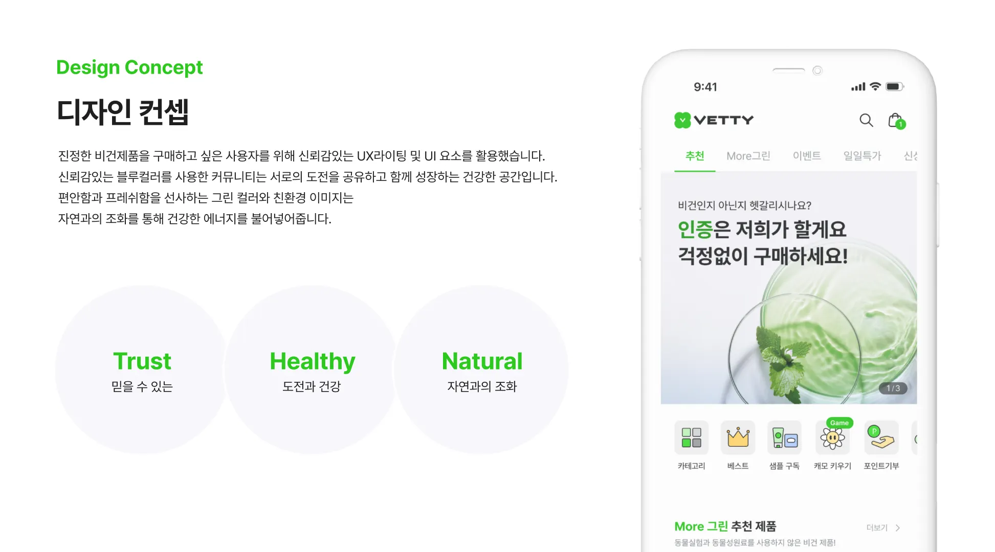 VETTY는 동물실험을 하지 않고 동물성 재료를 배제한 믿을 수 있는 비건 제품만을 선보이는 비건 뷰티 커머스 서비스입니다. 비건지향자의 가치관을 이해하고 공감하며, 믿을 수 있는 인증 시스템과 편리한 정보 제공으로 가치 소비를 지원합니다.