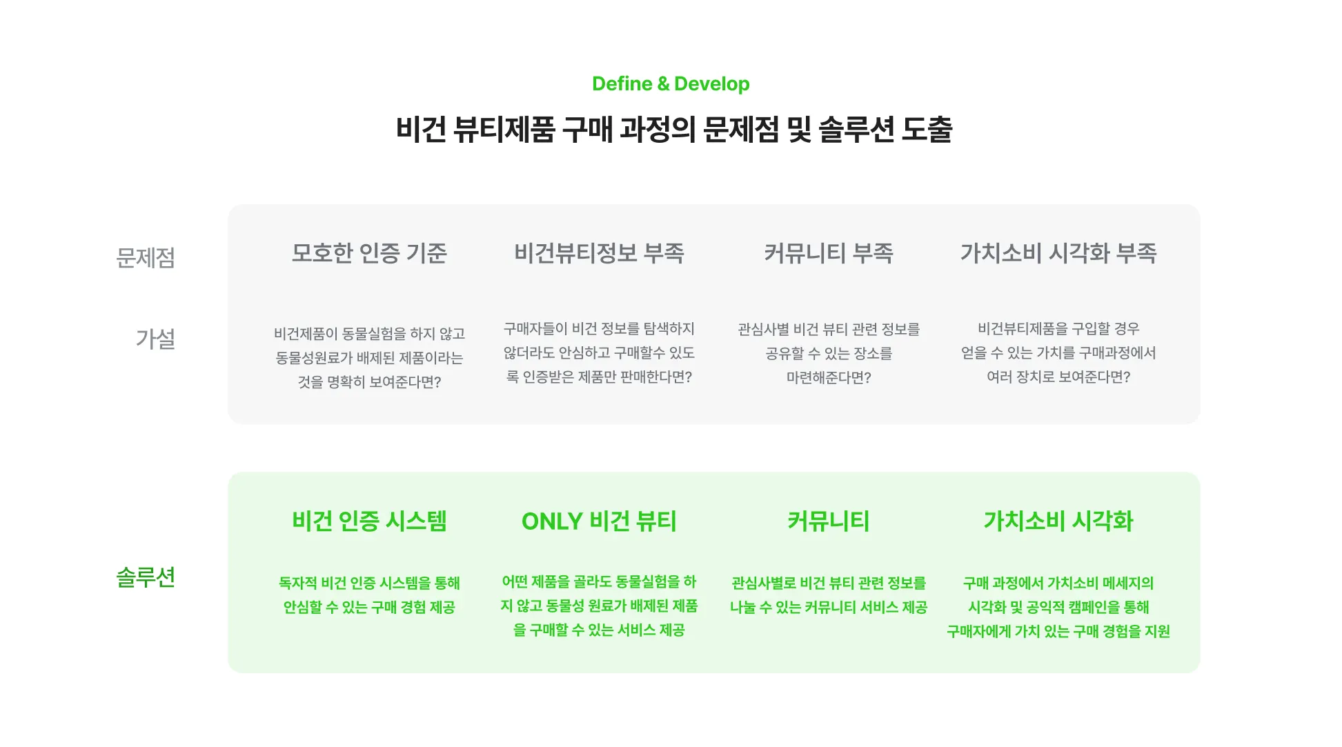저희의 비건 인증 기준은 기존의 식품 관련 비건 기준과는 달리 화장품에서는 동물성원료가 들어가는지, 동물실험을 하지 않는지가 주요 기준이 됩니다.
